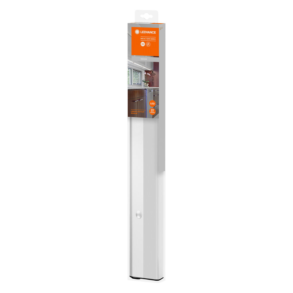 Flat under-cabinet luminaire for surface mounting. Product advantages: Linking of up to 43 luminaires (ECO version) or 18 luminaires (sensor version). Various accessories included: cables and EU plugs. Areas of application: Shelf undermount lighting.