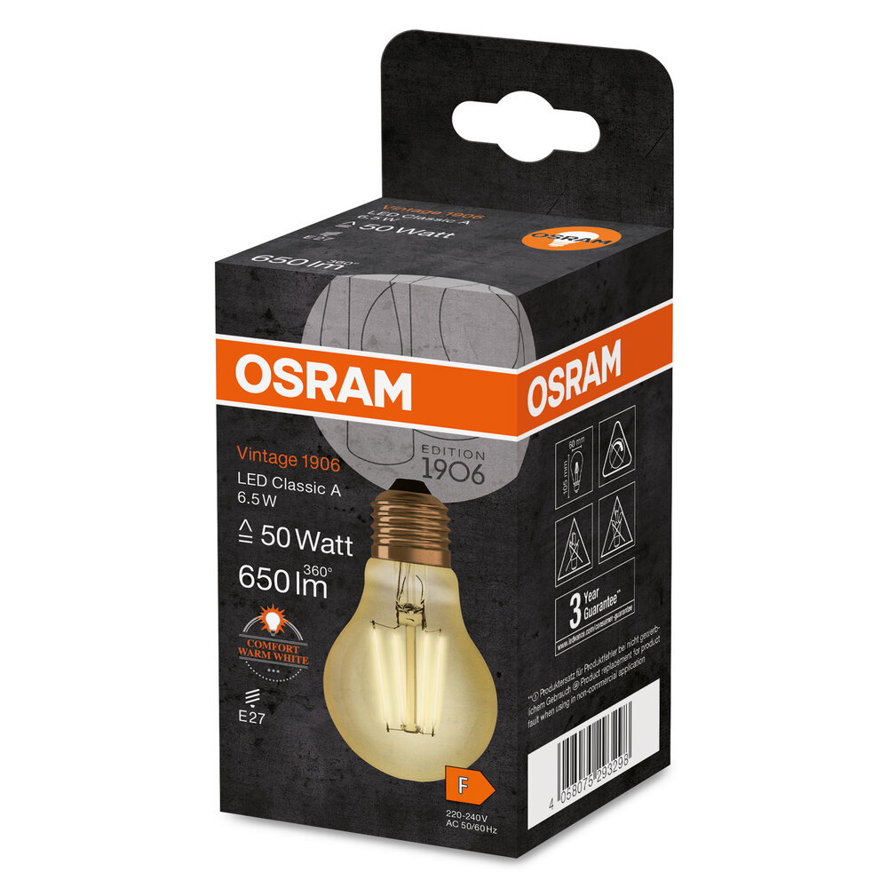 LED lamps, vintage edition. Product features: LED lamps for mains voltage. Lamp made of glass. Service life: up to 15,000 h. Beam angle: up to 360°. Good light quality; Color rendering index Ra: ≥ 80; constant color location. Product advantages: Very low energy consumption. Instant 100% light, no warm-up time. Easy replacement of standard bulbs. Lamps with innovative LED "filament" technology. Areas of application: Ideal for decorative fixtures. Household applications. General lighting. Outdoor use only in suitable outdoor luminaires.