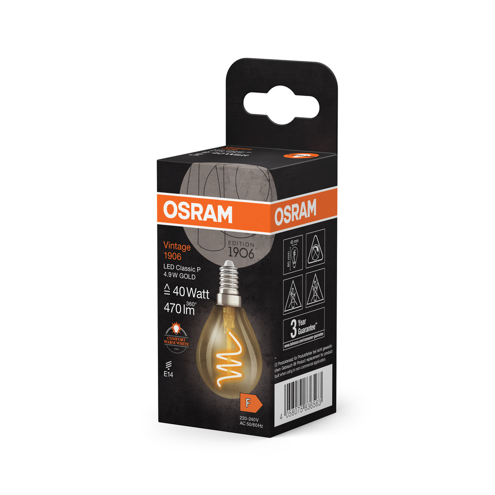 LED lamps, vintage edition, classic mini ball shape. Product features: LED lamps for mains voltage. Lamp made of glass. Service life: up to 15,000 h. Beam angle: up to 360°. Good light quality; Color rendering index Ra: ≥80; constant color location. Product advantages: Lower energy consumption than incandescent or halogen lamps. Instant 100% light, no warm-up time. Easy replacement of standard bulbs. Lamps with innovative LED "filament" technology. Areas of application: Ideal for decorative fixtures. Household applications. General lighting. Outdoor use only in suitable outdoor luminaires.