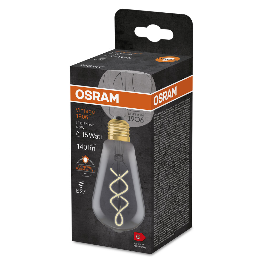 LED lamps, vintage edition. Product features: LED lamps for mains voltage. Lamp made of glass. Service life: up to 15,000 h. Beam angle: up to 360°. Good light quality; Color rendering index Ra: ≥ 80; constant color location. Product advantages: Very low energy consumption. Instant 100% light, no warm-up time. Easy replacement of standard bulbs. Lamps with innovative LED "filament" technology. Areas of application: Ideal for decorative fixtures. Household applications. General lighting. Outdoor use only in suitable outdoor luminaires.