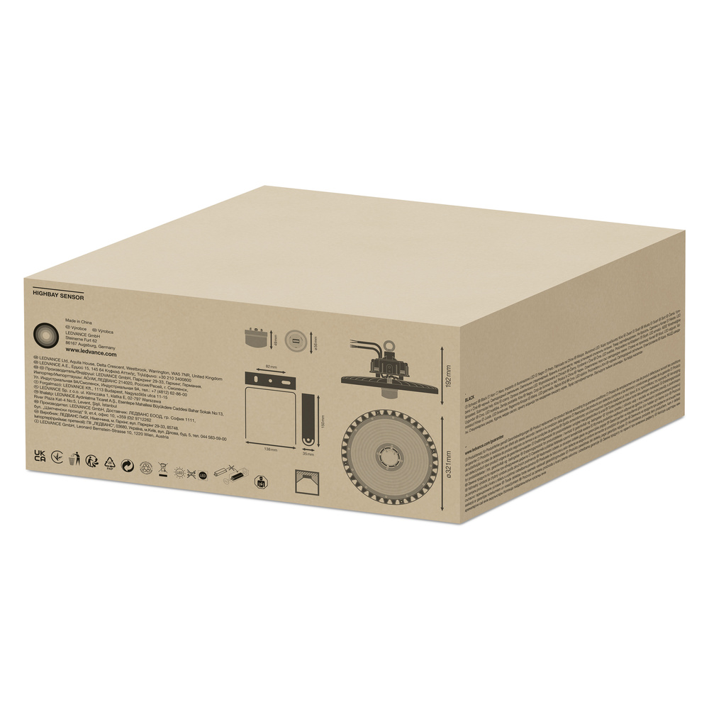 Luz de alta bahía hasta 150 lm/W con sensor de alta frecuencia. Características del producto: Sensor de alta frecuencia para la detección de luz diurna y movimiento. Diferentes flujos luminosos y ángulos de apertura para alturas de montaje desde ~ 6 m hasta 10 m en 4000 K . Ventajas del producto: múltiples opciones de ajuste para el alcance del sensor, la detección de luz diurna y el tiempo de espera. Alta eficiencia luminosa. Hasta un 64% de ahorro energético en comparación con las luminarias convencionales de espejo de alta bahía. Garantía de 5 años. Adecuado para su uso en ambientes polvorientos y húmedos gracias a su alto grado de protección. Áreas de aplicación: Sustitución de luminarias espejo de alta altura por lámparas de vapor de mercurio o haluro metálico. Almacenes. salas de logística. Industria. Techos altos (por ejemplo, en centros comerciales, aeropuertos, edificios comerciales, vestíbulos). Equipamiento técnico: Sensor, anillo de montaje y soporte de montaje incluidos. Reflectores, refractores y mando remoto disponibles como accesorios separados.