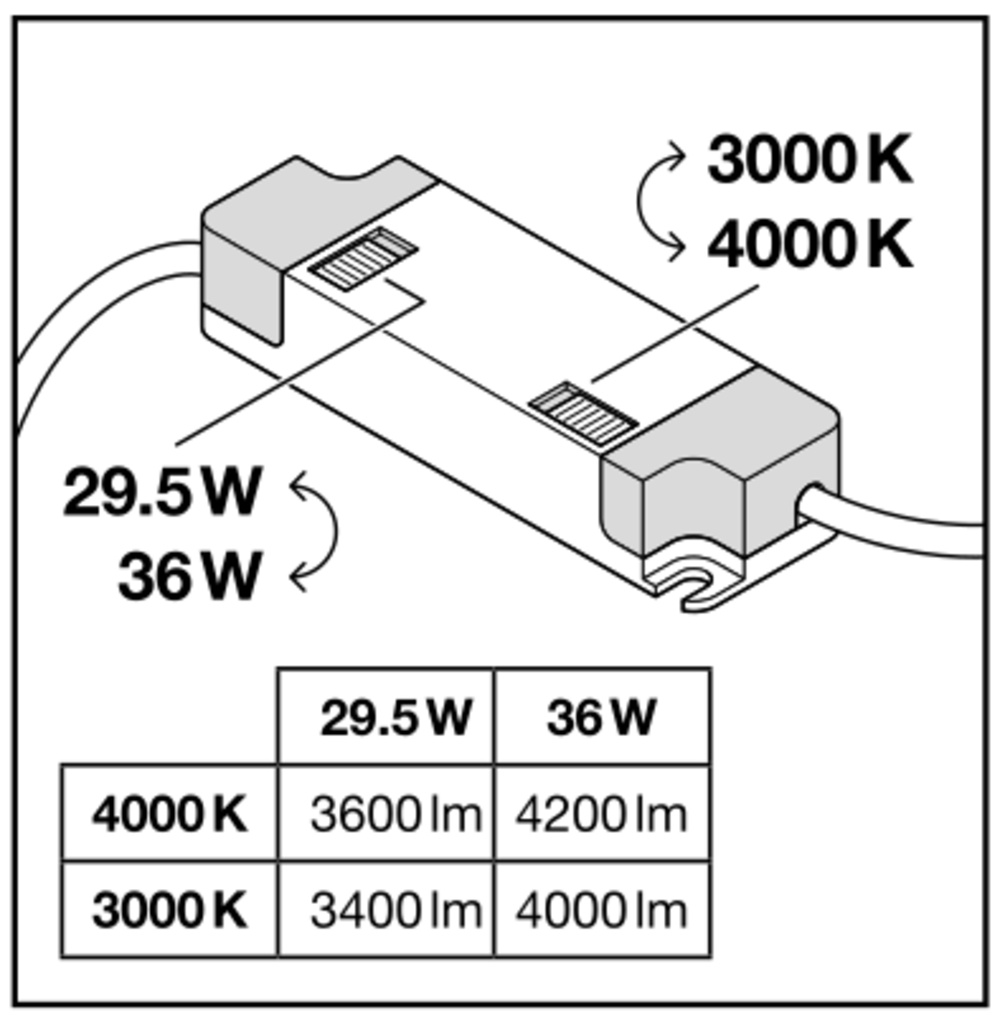 Luminarias cuadradas empotradas con Ra90, ajuste selectable de color de luz y potencia (CCT/Power Select - CPS) y un fuerte control de deslumbramiento, para sistemas de techo de 625 x 625 mm. Características del producto: Marco de aluminio extruido. Difusor de poliestireno. Terminal de conexión de 5 pines, sección transversal del cable de hasta 5 x 2,5 mm². Versiones Luminaire con controlador DALI-2 habilitado para IoT disponible. Vida útil (L80/B10): hasta 60.000 h (a 25 °C). Ventajas del producto: Alto rendimiento técnico gracias al CRI90 y alta eficiencia luminosa. Muy versátil gracias a un CCT y un ajuste de potencia (CCT/Power Select - CPS) que se puede seleccionar en el driver. Alta consistencia de color con SDCM 3. Buen control del deslumbramiento (UGR < 19). Cableado a través posible con caja de conexión incluida. Controlador externo para mayor flexibilidad y fácil instalación. Luz de parpadeo bajo gracias a un lastre electrónico especial. Servicios ampliados como monitorización del consumo de energía y mantenimiento remoto posibles con las versiones DALI. Garantía de 5 años. Áreas de aplicación: Sustitución directa de luminarias empotradas por lámparas fluorescentes. Oficinas, salas de conferencias. Zonas de recepción, entradas, pasillos, ascensores. Escuelas, edificios públicos. Adecuado para sistemas de techo empotrado con una dimensión de rejilla de 625 x 625 mm. Equipamiento técnico: Accesorios disponibles para diversas opciones de instalación. Caja de conexión con terminal de 5 pines incluida. Abrazaderas de seguridad incluidas. Balasto externo con deslizadores para ajustar CCT y potencia incluidos.
