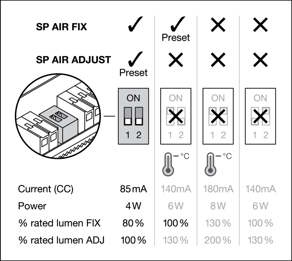 Focos empotrados para falsos techos estrechos y de baja energía, fijos. Características del producto: Índice de reproducción cromática Ra: 90. Grado de protección: IP65 (lado de la habitación). Ángulo de haz: 36°. Carcasa de aluminio fundido. Muelles con recubrimiento de silicona suave. Regulable (en muchos atenuadores comerciales, véase auchwww.ledvance.de/dim). Posible cableado a través de ella. Ventajas del producto: Construcción hermética para reducir fugas de aire y menor pérdida de energía. Puede cubrirse con muchos tipos de materiales de aislamiento térmico. El diseño plano permite la instalación en cavidades bajas del techo. Powerselect: Ajusta el brillo mediante los interruptores dip del driver. Fácil reemplazar el driver externo gracias al conector de bayoneta. Instalación y conexión eléctrica fáciles gracias a terminales sin herramientas. SCALE Design: gran apariencia, materiales de alta calidad y tamaño reducido que encajan en cualquier entorno. Garantía de 5 años. Áreas de aplicación: Sustitución directa de focos empotrados por lámparas halógenas. Techos en casas de baja energía. Iluminación general. Habitaciones de hotel y pasillos. Bares, restaurantes. Acento. Viviente. Equipamiento técnico: Balasto externo con interruptores dip incluidos para ajustar la potencia durante la instalación.