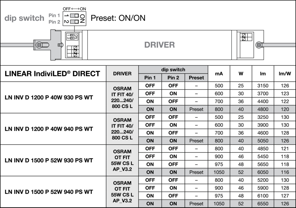 Luminaria montada en superficie para aplicaciones de techo de oficina simple o continua con CRI90 y ajuste de potencia seleccionable (Power Select - PS), 1500 mm