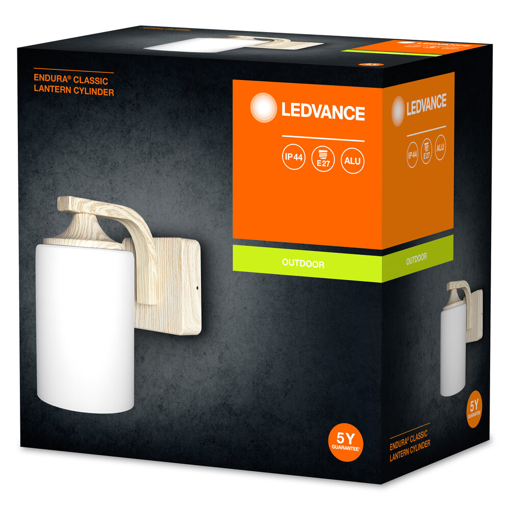 Lampes murales, cylindriques avec diffuseur en verre. Caractéristiques du produit : Diffuseur en verre dépoli. Boîtier en aluminium moulé sous pression. Degré de protection : IP43. Avantages produits : grande flexibilité dans le choix de l’ampoule grâce à la douille E27. Adapté aux applications intelligentes grâce à sa compatibilité avec les lampes Smart+ de LEDVANCE. Installation simple et rapide. Domaines d’application : éclairage d’entrée. Terrasses, balcons. Équipement technique : accessoires de montage et de connexion complets inclus. Aucune ampoule incluse.