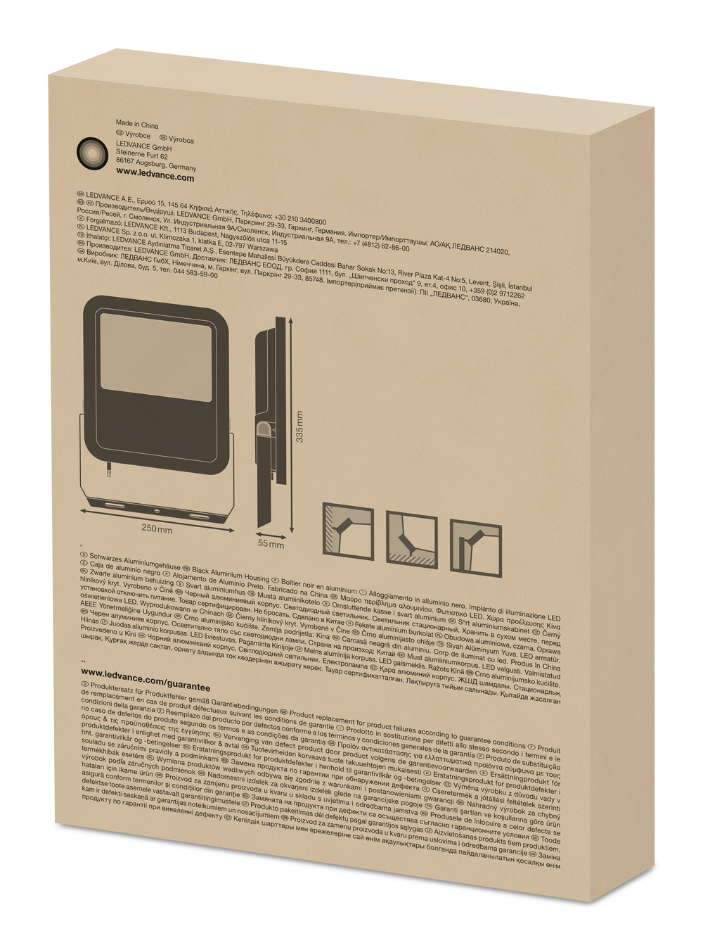 Projecteurs polyvalents avec un flux lumineux allant jusqu’à 10 000 lm. Caractéristiques du produit : Distribution symétrique de la lumière basée sur réflecteur avec un angle de faisceau de 100° x 100°. Ballast intégré avec large plage de tension d’entrée, adapté à 100 - 277 VAC. Protection contre les surtensions : jusqu’à 6 kV (L/N-PE), 4 KV (L-N). Support de montage avec un angle de 30° et une grande plage de rotation. Membrane climatique pour un échange d’air optimisé, avec un degré constant élevé de protection IP. Câble flexible préinstallé (H05RN-F) de 1 m de longueur, sertissé de 3 x 1,0 mm². Avantages du produit : Lumineux, robustes et durables. Éclairage sûr et très uniforme, grâce à l’opale et au diffuseur en verre trempé. Aucune émission de lumière dans le demi-espace supérieur (ULOR 0 %) à une inclinaison de 0°. Des économies d’énergie allant jusqu’à 90 % par rapport aux inondations de lampes halogènes. Garantie de 5 ans. Domaines d’application : remplacement des projecteurs par des lampes halogènes. Application extérieure (IP65). Industrie. Espace public. Sites. Éclairage des façades.