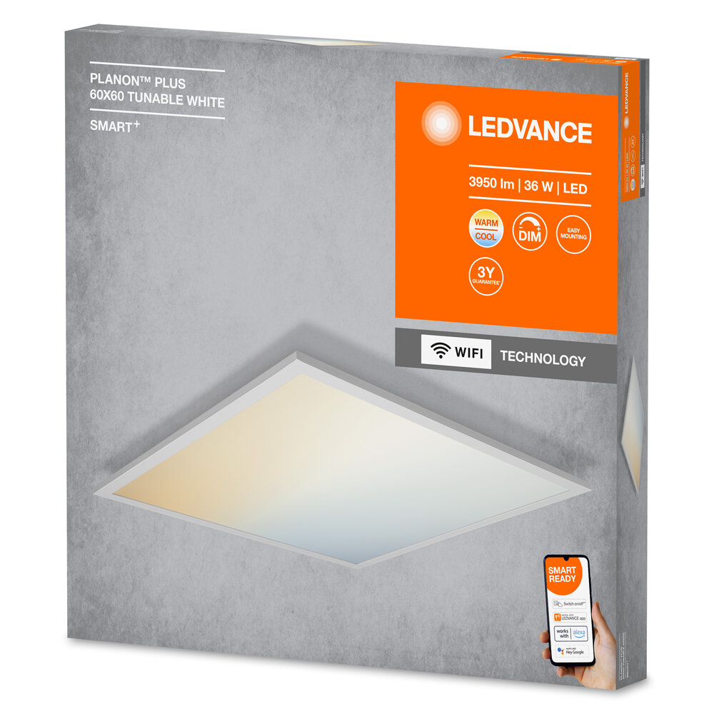 Des panneaux lumineux avec technologie WiFi. Fonctionnalités du produit : Contrôlable via l’application WiFi LEDVANCE SMART+ (avec au moins Android™️ 4.4 ou iOS 10.0). Contrôle possible via Google Assistant ou Amazon Alexa. Dimmable. Température de couleur réglable via Blanc réglable : 3 000... 6 500 K. Protocole réseau : WiFi. Avantages du produit : installation facile et rapide. Domaines d’application : Applications intérieures. Cuisine, salon, chambre des enfants ou bureau. Équipement technique : support de transport inclus. Y compris les vis de fixation et les baguettes. Le contrôle via une application ou une commande vocale nécessite un système domotique connecté compatible. Un smartphone ou une tablette est nécessaire pour le contrôle via LEDVANCE SMART + application WiFi.