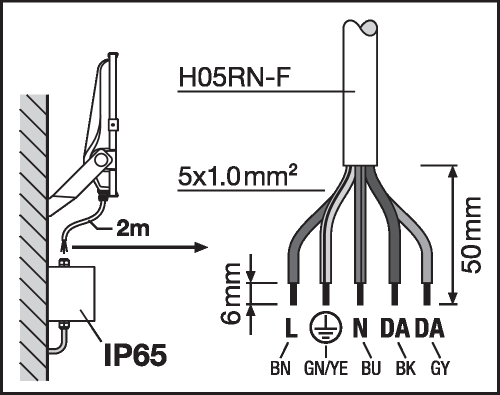 Projecteur basé sur DALI 2.0 avec une large distribution de lumière asymétrique pour une large gamme d’applications. Caractéristiques du produit : Interface DALI 2.0 pour l’intégration dans les systèmes de gestion de l’éclairage. Haute efficacité lumineuse : jusqu’à 140 lm/W. Distribution asymétrique de la lumière pour un large éventail d’applications. Support de montage biseauté (45°) avec une plage de rotation allant jusqu’à 180°. Une protection contre les surtensions allant jusqu’à 10 kV (L/N-PE), 6 KV (L-N). Membrane climatique intégrée pour empêcher la formation de condensation à l’intérieur du luminaire. Connexion par câble (2 m), câblage requis. Degré de protection : IP66. Résistance aux impacts : IK08. Plage de température ambiante pendant le fonctionnement : -30...+50 °C. Avantages produits : économies d’énergie allant jusqu’à 90 % par rapport aux lampes halogènes. Jusqu’à 45 % d’économies d’énergie par rapport aux luminaires utilisant des lampes à décharge conventionnelles. Lumineux, robustes et durables. Distribution uniforme de luminance et réduction de l’éblouissement. Aucune émission de lumière dans le demi-espace supérieur (ULOR 0 %) à une inclinaison de 0°. Keyhole pour une installation encore plus facile. Garantie de 5 ans. Applications : Remplacement direct des luminaires utilisant des lampes HID. Utilisation extérieure (IP66). Parking de parking. Espace public. Industrie. Installations sportives. Éclairage architectural. D-mark selon la norme EN 60598-2-24 pour les locaux commerciaux à risque d’incendie, par exemple en raison de l’accumulation de poussière.