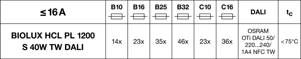 Nombre maximal de luminaires Disjoncteur miniature C16