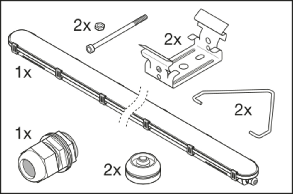 Lumini impermeabili, forma classica. Caratteristiche del prodotto: Alta efficienza luminosa: fino a 139 lm/W. Angolo del fascio: 110°. Vantaggi del prodotto: luce a basso sfarfallio ≤ 10%. Distribuzione uniforme della luce. Fino al 60% di risparmio energetico (rispetto agli apparecchi che utilizzano lampade fluorescenti). Installazione facile, connessione senza attrezzi. Garanzia di 5 anni. Aree di applicazione: aree industriali e di magazzino. Parcheggi e sottopassi. Garage. Officine, linee di produzione. Equipaggiamento tecnico: Supporti in acciaio inox e viti di sicurezza inclusi. Accessori di montaggio inclusi (kit sospensioni, kit antifurto).