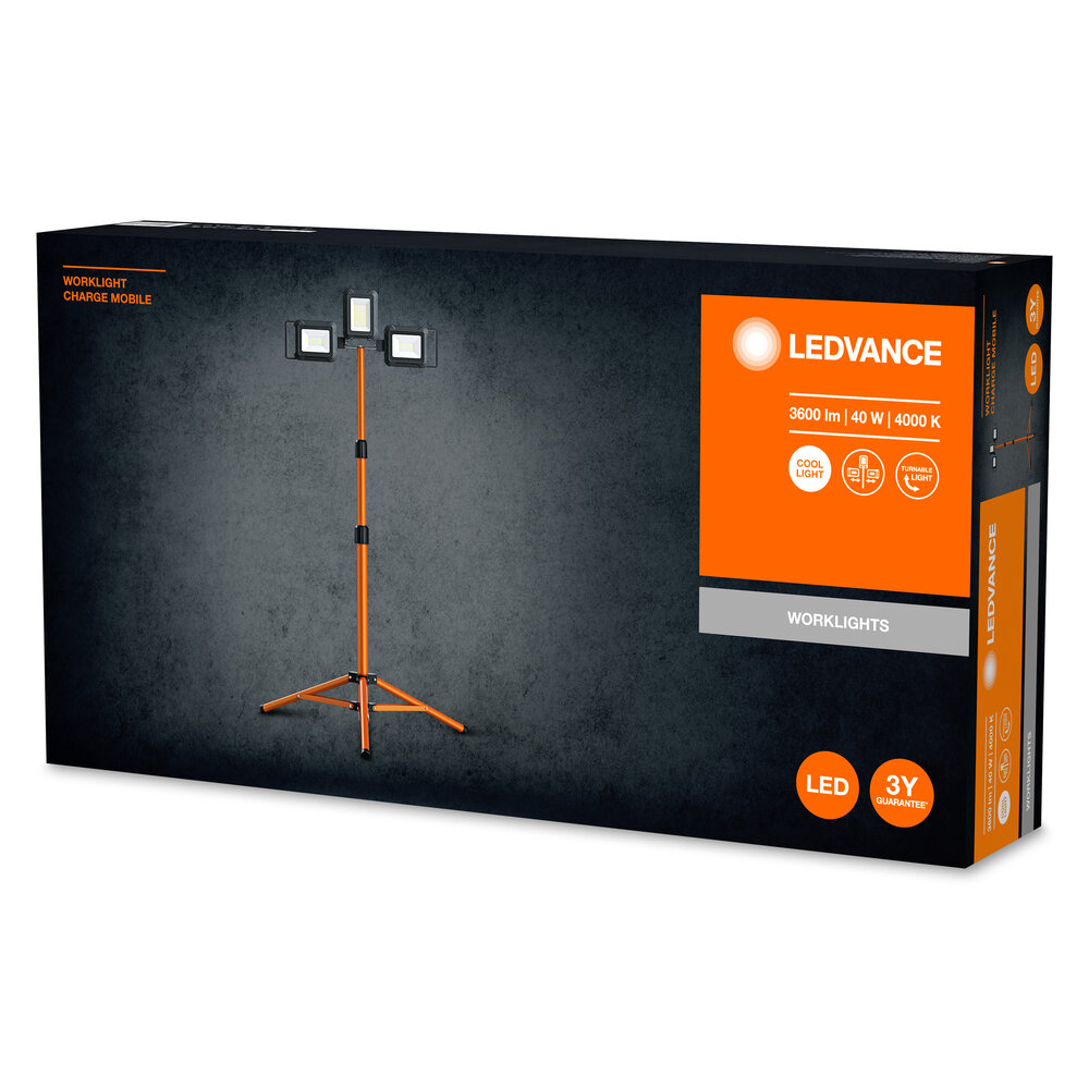 Luce da lavoro a LED con treppiede e luci staccabili e ricaricabili. Caratteristiche del prodotto: Riflettore centrale da 30 W, alimentato con la tensione di rete e carica i 2 fari portatili collegati da 5 W. Facile utilizzo e installazione. Disponibile con 1, 2 o 3 teste lampade. Angolo di rotazione della testa della lampada: 360°, angolo di rotazione: 180°. Grado di protezione, luminario: IP65, grado di protezione, spina: IP44. Tipo di spina E/F. Vantaggi del prodotto: pieghevole per una facile conservazione. Risparmi energetici fino all'80% rispetto alle lampade alogene da lavoro. Coperchio in vetro temperato parzialmente smerigliato, per un'illuminazione uniforme. I fari portatili e ricaricabili permettono un'illuminazione flessibile. Aree di applicazione: Ristrutturazione. Garage. Cantina. Officina. Equipaggiamento tecnico: accessori di montaggio e connessione completi inclusi.