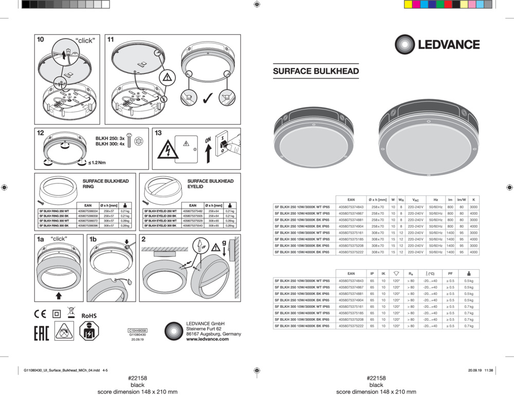 Illuminazione robusta su pareti e soffitto con protezione IP65 e sensore ad alta frequenza. Caratteristiche del prodotto: Sensore ad alta frequenza per il rilevamento della luce diurna e del movimento. Involucro in policarbonato stabilizzato UV (PC), diffusore PC. Resistenza agli urti: IK10. Terminale a spina per una connessione senza attrezzi. Possibile collegamento attraverso il filo. Grado di protezione: IP65. Flusso luminoso: fino a 1.400 lm. Alta efficienza luminosa: fino a 95 lm/W. Vita utile (L70/B50): fino a 50.000 h (a 25 °C). Intervallo di temperatura ambiente durante il funzionamento: -20...+40 °C. Vantaggi del prodotto: molteplici opzioni di regolazione per la gamma dei sensori, il rilevamento della luce diurna e il tempo di attesa. Adatto all'uso in ambienti polverosi e umidi grazie al suo alto grado di protezione. Adatto all'uso in aree pubbliche grazie all'elevata classificazione IK. Sono disponibili anelli di copertura separati per un design estetico e funzionale. Garanzia di 5 anni. Molteplici modelli di montaggio per un'installazione comoda. Fino al 50% di risparmio energetico (rispetto ai luminari che utilizzano lampade fluorescenti). Aree di applicazione: sostituzione diretta degli illuminatori con lampade fluorescenti. Corridoi, trombe di scale, aree d'ingresso. Passaggi, sottopassaggi. Spazio pubblico. Equipaggiamento tecnico: Anelli di copertura aggiuntivi disponibili in vari modelli. Inclusi viti di montaggio e perni.