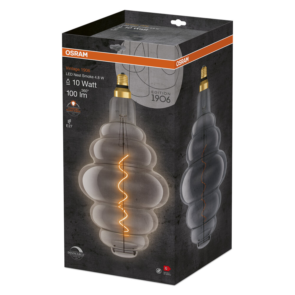 Lampade LED dimmergibili, edizione vintage. Caratteristiche del prodotto: lampade LED per la tensione di rete. Lampada di vetro. Vita operativa: fino a 15.000 h. Angolo di larghezza: fino a 360°. Dimmerabile. Buona qualità della luce; Indice di resa cromatica Ra: ≥ 80; Posizione costante del colore. Vantaggi del prodotto: Consumo energetico molto basso. Luce istantanea al 100%, senza tempo di riscaldamento. Facile sostituzione delle lampadine standard. Lampade con innovativa tecnologia LED "filamento". Aree di applicazione: Ideale per accessori decorativi. Applicazioni domestiche. Illuminazione generale. Uso esterno solo in lampadari adatti per esterni.