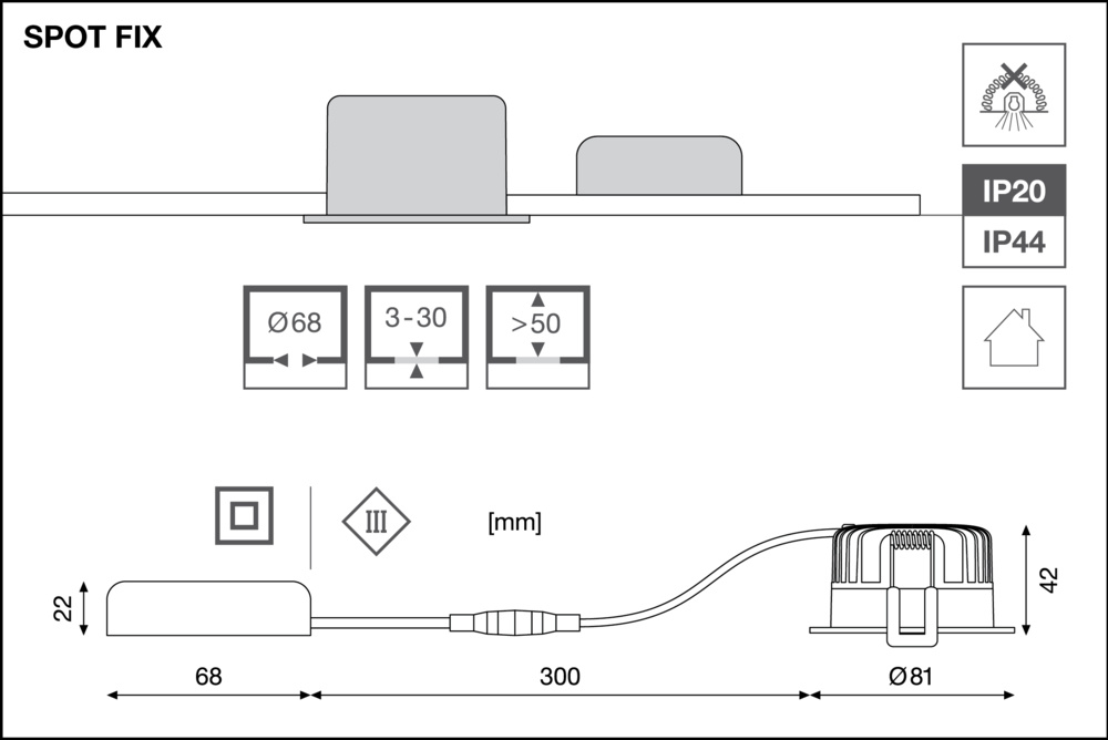 Riflettore incassato per uso interno, fisso. Caratteristiche del prodotto: Indice di resa cromatica Ra: 90. Grado di protezione: IP44 (lato stanza). Angolo del fascio: 36°. Involucro in alluminio pressofuso. Molle con morbido rivestimento in silicone. Dimmable (su molti dimmer commerciali, vedi auchwww.ledvance.de/dim). Possibile collegamento attraverso il filo. Vantaggi del prodotto: risparmio energetico fino al 90% rispetto ai riflettori alogeni per lampade. Powerselect: Regola la luminosità tramite gli interruttori a dip sul driver. Facile sostituzione del driver esterno grazie al connettore a baionetta. Installazione e connessione elettrica facili grazie ai morsetti senza attrezzi. SCALE Design - ottimo aspetto, materiali di alta qualità e dimensioni ridotte adatte a qualsiasi ambiente. Garanzia di 5 anni. Aree di applicazione: sostituzione diretta dei fari incassati con lampade alogene. Illuminazione generale. Camere d'albergo e corridoi. Bar, ristoranti. Accento. Gallerie, musei. Vivente. Attrezzatura tecnica: Zavorra esterna con interruttori a deriva inclusi per regolare la potenza durante l'installazione. Gli anelli per la ristrutturazione sono disponibili come accessori. Alcuni driver DALI 2.0 selezionati sono disponibili come accessorio.