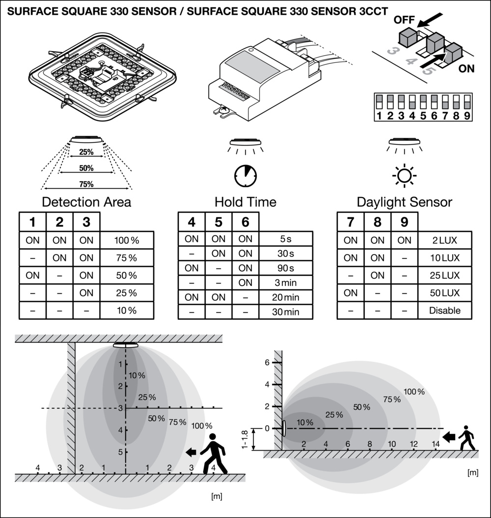 Luce da parete e soffitto con IP44, sensore ad alta frequenza e temperatura colore selezionabile. Caratteristiche del prodotto: Sensore ad alta frequenza per il rilevamento della luce diurna e del movimento. Grado di protezione: IP44 (montaggio a soffitto), IP 20 (montaggio a parete). Resistenza all'impatto: IK03. Alloggiamento in metallo, copertura PMMA. Intervallo di temperatura ambiente di esercizio: -20 - +40 °C. Solo uso interno, non adatto all'esterno. Vantaggi del prodotto: regolazione facile della gamma dei sensori, rilevamento della luce diurna e tempo di combustione. Lampadari interni con alta efficienza luminosa. Molto versatile grazie a un colore di luce selezionabile (CCT Select) in 3000K, 4000K e 5000K. Fino al 55% di risparmio energetico rispetto agli apparecchi che utilizzano lampade fluorescenti compatte. Installazione semplice e rapida. Luce molto omogenea. Garanzia di 5 anni. Aree di applicazione: corridoi. Scale. Stanza da bagno. Guadagni. Equipaggiamento tecnico: copertura di ricambio disponibile come opzione.