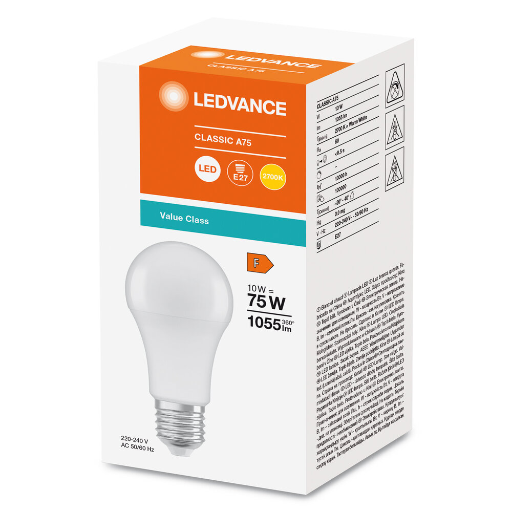Lampade LED, classica forma di lampadina. Caratteristiche del prodotto: Lampadine LED professionali per la tensione di rete. Non dimmerabili. Durata di vita: fino a 15.000 h. Buona qualità della luce; Indice di resa cromatica Ra: ≥ 80; Posizione costante del colore. Vantaggi del prodotto: Basso consumo energetico. Facile sostituzione delle lampade classiche grazie al design compatto. Luce istantanea al 100%, senza tempo di riscaldamento. Aree di applicazione: applicazioni domestiche. Illuminazione generale. Uso esterno solo in lampadari adatti per esterni.