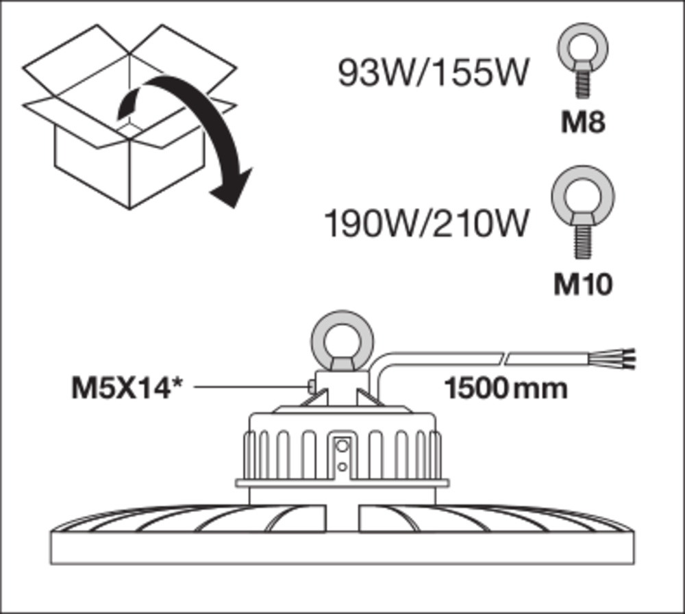 Hallenleuchten bis zu 140 lm/W und attraktiven UGR Werten. Produkteigenschaften: Unterschiedliche Lichtströme und Öffnungswinkel für Montagehöhen von ~ 6 m bis 14 m in 4000 K oder 6500 K. Produktvorteile: Verbesserter UGR verglichen mit früheren Generationen, bis zu UGR ≤ 22 in Kombination mit Reflektor. Hohe Lichtausbeute. Bis zu 60 % Energieersparnis verglichen mit konventionellen Hallenspiegelleuchten. 5 Jahre Garantie. Gewicht- und Größenoptimierung durch kompaktes Design. Anwendungsgebiete: Ersatz für Hallenspiegelleuchten mit Quecksilberdampf- oder Halogen-Metalldampflampen. Lagerhäuser. Logistikhallen. Industrie. Hohe Decken (z.B. in Einkaufszentren, Flughäfen, Geschäftsgebäuden, Lobbies). Technische Ausstattung: Montagering enthalten. Montagebügel, Reflektoren und Refraktoren als separates Zubehör erhältlich.