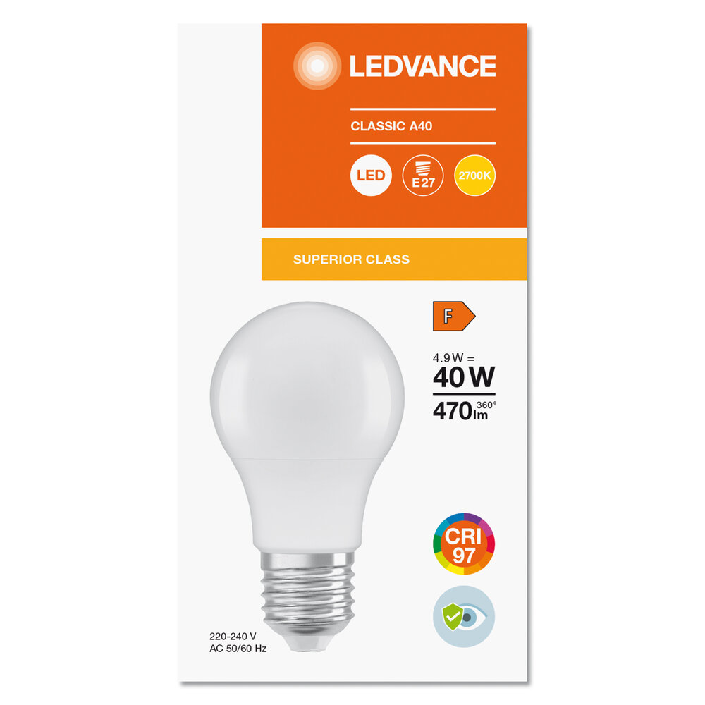 LED-Lampen mit CRI 97, A B P Formen. Produkteigenschaften: LED-Lampen für Netzspannung. Farbwiedergabeindex Ra ≥ 97. Produktvorteile: Design, Abmessungen, Lichtstrom vergleichbar mit einer Halogenlampe. Natürliches Lichtspektrum mit hervorragender Farbwiedergabe von CRI > 97. Stark reduzierter Blauanteil. Verbesserter Sehkomfort und geringere Augenbelastung. Sehr geringer Energieverbrauch. Sofort 100 % Licht, keine Aufwärmzeit. Geringes flackern. Anwendungsgebiete: Anwendungen im Haushalt. Allgemeinbeleuchtung. Einsatz im Außenbereich nur in geeigneten Außenleuchten.